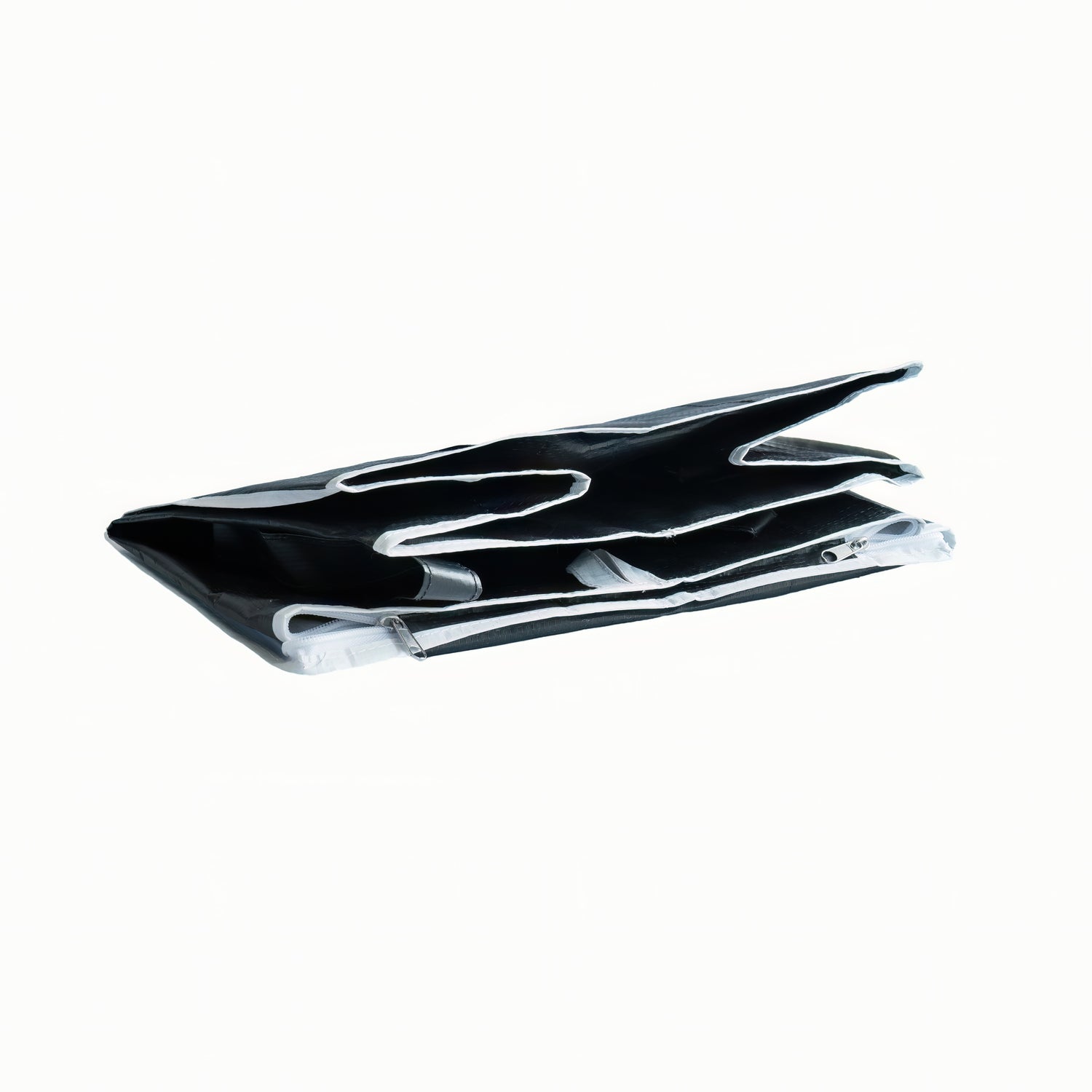 Die Recyco Pfandtasche besteht innen und außen aus einem flexiblen, schmutzabweisenden synthetischen Material. Das Innenfutter aus Polyester stößt Flüssigkeiten ab, sodass die Tasche besonders langlebig ist. Zudem ist die Tasche komplett faltbar, sodass sie kaum Platz einnimmt.